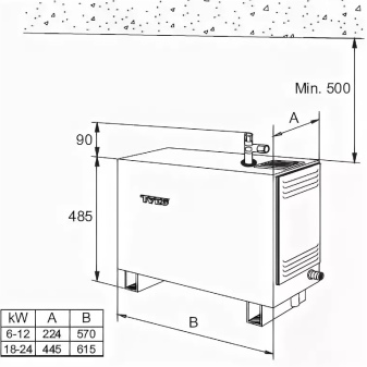 Um ein Dampferzeugungsgerät korrekt in der Saunakabine zu installieren, müssen die folgenden Punkte beachtet werden: