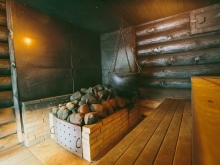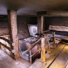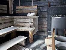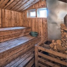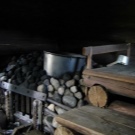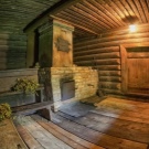 Sie müssen das Innere der Sauna nicht fertigstellen. Dies ist nicht verwunderlich, da sich unter den Rußablagerungen kein Verkleidungsmaterial befindet. Ein Saunaofen befindet sich im Raum selbst. Der Ofen besteht aus Basalt, wobei große Steine nach unten und kleine und mittelgroße Steine nach oben führen. Zwischen den Steinen gibt es Lücken, so dass der Rauch ungehindert abziehen kann.