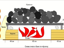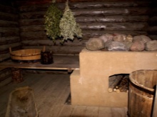 Der Brennholzverbrauch in einem solchen Badehaus war ziemlich hoch. Es wurde mehr als vier Stunden lang erhitzt - zunächst, bis die roten Steine erschienen, dann nahm man die Zange heraus und legte sie in einen Behälter mit Wasser, und das erhitzte Wasser wurde nach dem Dämpfen zum Abspülen verwendet. Die Dampfer gossen die ganze Zeit Wasser auf die erhitzten Steine, um dichten Dampf zu erzeugen. Die Tür wurde offen gelassen, um das gesamte Kohlenmonoxid entweichen zu lassen, und erst nach eineinhalb bis zwei Stunden wieder geschlossen. Wenn die Sauna gut aufgeheizt war, ging man ins Dampfbad.