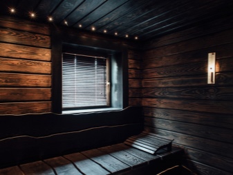 An einer der Wände hinter dem Saunaofen befindet sich ein Regal, ein hohes Regal fast unter der Decke. Auf der anderen Seite steht eine Bank. Der Boden wird mit Holzbrettern verlegt, die einen Spalt haben, damit das Wasser durch sie hindurchfließen kann und sich nicht im Raum staut. Alle asketischen Holzmöbel werden gut geschabt, bis sie vollkommen glatt sind, da sich sonst Splitter nicht vermeiden lassen.