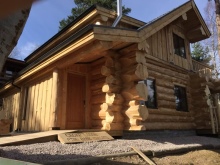 Das Holz ist die beliebteste Wahl, und es wird aus einem Stamm geschnitten. Abgesehen davon, dass es eine gleichmäßige runde Form hat, trocknet es auch in speziellen Zellen nach allen Technologien, was die Wartezeit für die Schrumpfung des Gebäudes reduziert.