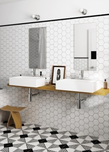 - Verhext. Für diejenigen, die an alles Ungewöhnliche gewöhnt sind. Es handelt sich um ein kleinformatiges Feinsteinzeug, das den internationalen Qualitäts- und Sicherheitsstandards entspricht. Die Designer haben versucht sicherzustellen, dass der Benutzer viel Raum für Kreativität hat. Die Fliesen haben eine sechseckige Form, so dass es mehr Möglichkeiten für die Gestaltung von Böden und Wänden gibt.