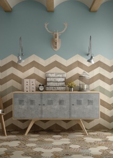 - Caprice Deco. Viereckige Fliesen in 200x200mm. Hergestellt im Patchwork-Stil. Das Design wird von Pastellfarben und einem abstrakten Muster dominiert, dank dem die einzelnen Elemente beliebig kombiniert werden können.