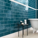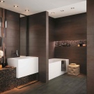 Für die Dekoration von Badezimmern stellt die Fabrik eine Vielzahl von Endfliesen her. "BOSTON" - Fliese Abmessungen 7,5x30, rechteckig Keramik und Feinsteinzeug. Die Oberfläche ist matt in dunklen Tönen.
