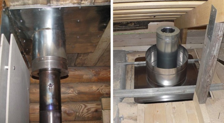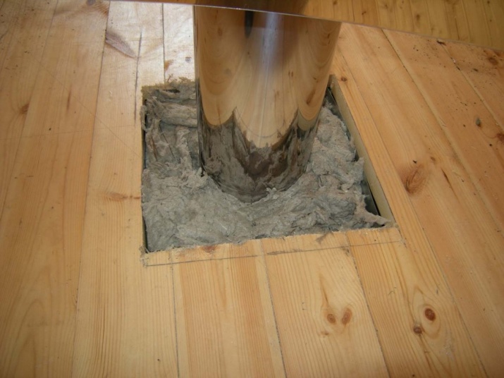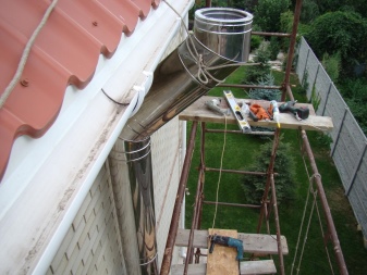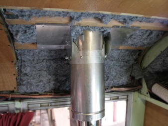 Μετά την προετοιμασία, μπορούν να γίνουν εργασίες στην οροφή. Εκεί πρέπει να κοπεί το άνοιγμα της καμινάδας. Η διάμετρός του πρέπει να υπολογίζεται λαμβάνοντας υπόψη τη διάταξη. Για την ασφάλεια, χρησιμοποιείται ένα ειδικό στοιχείο, η κύρια φλάντζα. Τοποθετείται στον σωλήνα και στερεώνεται στην οροφή από το εξωτερικό, εμποδίζοντας έτσι τη διαρροή αυτού του περάσματος. Επιπλέον, οι άκρες θα πρέπει να σφραγίζονται με συγκολλητικό υλικό.