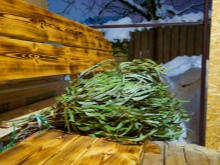 - Διατηρείτε τα εξαρτήματα σε στεγνό χώρο με καλό αερισμό, οπότε δεν πρέπει να τα αφήνετε μέσα στη σάουνα. Κατά τη διάρκεια της θερμής καλοκαιρινής περιόδου, οι σκούπες μπορούν να αποθηκεύονται σε εξωτερικό χώρο κάτω από ένα στέγαστρο, π.χ. κάτω από τη στέγη της σάουνας. Το κυριότερο είναι να τα κρατάτε μακριά από το φως του ήλιου.