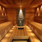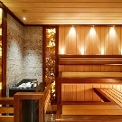 The ceiling in the Finnish baths is flat, it is often decorated with spot lights with a starry sky effect, which originally complement the interior. The floors are decorated with ceramic tiles or wood.