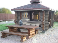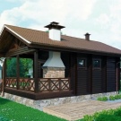 - Bath with a barbecue and a pergola. This option is perfect for those who love not only a good steam bath, but also to relax in the fresh air. The building should be decorated in ethnic style: install a large stove in the steam room, a wicker table and rocking chairs. Embroidered napkins, tablecloths and samovar will help to create a cozy atmosphere. Outside in the area of barbecue you can install a hammock, next to the gazebo plant floral arrangements.