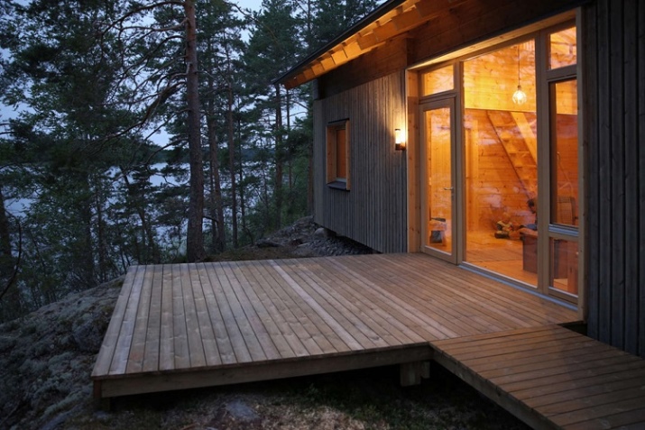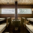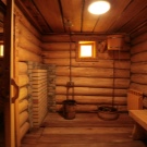 In the interior of the steam rooms are also present shelves, made of a special bar, and various accessories that allow to emphasize the stylistics. Since Finnish bathhouses are small, their design should not contain many decorative items. It is enough to fill the interior of the rooms with beautiful panels, lampshades, brooms, ladles and mats.