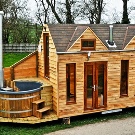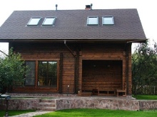 - House-bath. Such a building is very popular among developers, as it is multifunctional, has a presentable appearance and takes up little space on the site. For the building to have a luxurious "outfit", it is necessary to use precious wood for exterior cladding. It will fit perfectly in any stylistics of landscape design. Since in such a bath the rest room will simultaneously perform the role of the living room, then for its interior it is necessary to choose expensive furniture, decorated with gilding, beautiful textiles with floral compositions and ruffles.