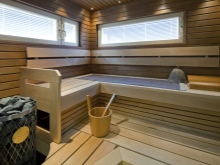 This type of sauna is very popular in the West. Due to the fact that the humidity level does not exceed 30% and the average air temperature reaches +100C, you can spend quite a lot of time in such saunas. This type of steam room by size refers to the "family" construction.