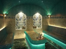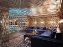 You can stay in this oriental steam room for twenty-four hours, because the temperature does not exceed the level of +50C. Except this, hammam differs by its exquisite and rich design, which is thought out in detail.