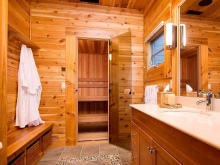 This design is perfect for those who love everything unusual and exclusive. To decorate the interior of such steam rooms, the rooms are decorated with drawings of sakura and the walls are supplemented with bamboo partitions.