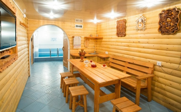 Particular attention should be paid to design the interior of the rest room, which in the steam room serves as a living room at the same time. It is necessary to create an atmosphere of comfort and warmth at home for a good rest. Regardless of the size of the room it should be necessarily present comfortable armchairs, sofas.