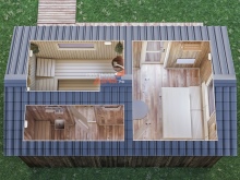 Combining the house and sauna will save your budget and free up space for other buildings.