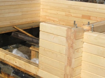Beforehand, a groove is cut in each bar. Due to the resulting notch, it is possible to fasten one bar to another, laying between them jute insulation. The first row of beams should be insulated from contact with the foundation with a layer of waterproofing material.