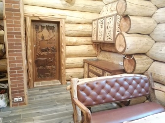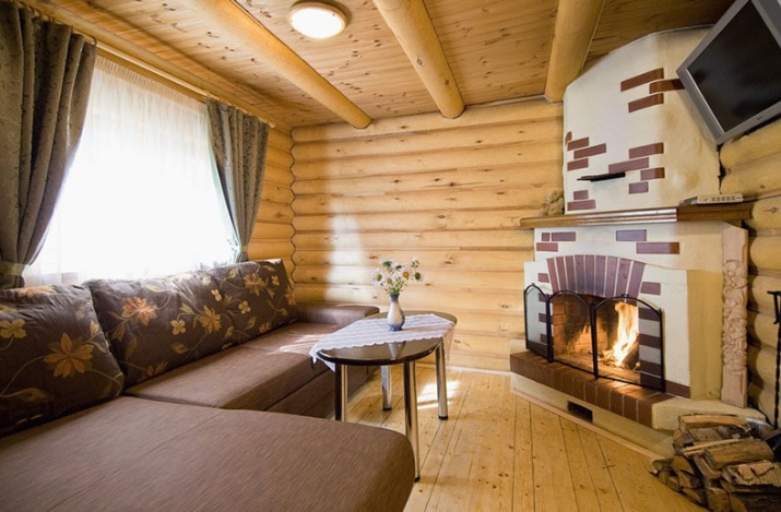 But this does not mean that only wood is used in the decoration of the bath. It can be brick or stone masonry, to which the appropriate accessories are selected. In the recreation room, for example, a fireplace will look harmonious. Upholstered furniture can also be here, suitable leather or with tapestry upholstery. More modern options involve the placement in the living room TV, music system, karaoke, where you can spend fun evenings with guests. Shower rooms can be tiled, which is both convenient and will create an attractive appearance of the room.