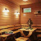 - The floor is traditionally made of wood. But more and more widespread are tiles and porcelain tiles. Note: When selecting the types of floor and wall coverings, their specific location and fixing options, it is desirable to give preference to the one that takes up less free space. In the vestibule (pre-bathroom), in addition to hangers, place a table for personal belongings, shelves for toiletries, and in case of an acute shortage of space - use folding elements of the interior. The form of shelves in the steam room is determined by the size of the room itself.