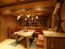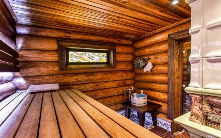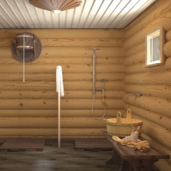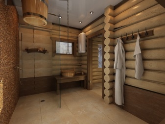 - The design of the interior of the bath, its filling is directly related to the layout of the rooms. On how everything is distributed, depends on the perception of certain design moves. Traditionally, it is believed that the best look buildings made of round logs. The timber of the modern model, however, is also quite good. Important: The ceiling in any case is made of wood - there is simply no alternative to this solution.
