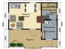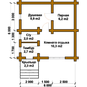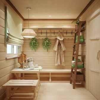All the "decoration" is limited only to hooks for hanging clothes and a small wide bench to facilitate changing clothes. In some 6x6 bathhouses and less the border between the vestibule and the rest room is erased. In this case, you can give up part of the partitions and one internal door.