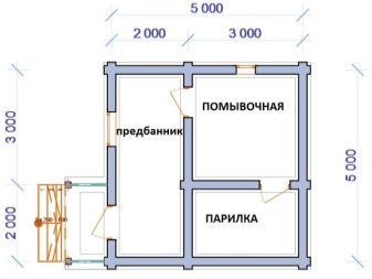 The key importance in determining the dimensions of the bath is the washing room. Important: If you have to limit yourself to a small building of 2 by 3 meters, then do not create a separate washing room - just allocate the appropriate corner in the steam room.