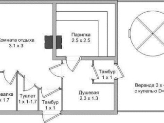 No matter how good the plans of baths with the combination of these rooms may seem, in fact their separation is more professional and better meets modern requirements. With a skilful approach even in the volume of 3x5 m you can put all the necessary zones - and even use them with undoubted comfort. Important: "compressing" the steam room in favor of the washing area is not the best idea.