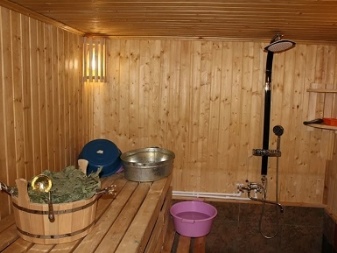 Important: if a full-fledged stationary toilet is located close to the building or if washing is rare (mostly in the warm season), it is not advisable to equip an additional restroom. It will be necessary to provide a separate drain from the bathing area - in a septic tank, or ideally through the central sewer system. Another important requirement is increased ventilation, which should work even more intensively than in the washing area. If the building was built a long time ago and it is impossible to allocate the necessary space, you will have to mount a lightweight partition type and put a separate container for sewage.