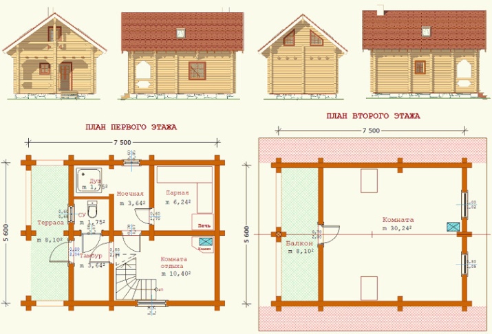 When equipping a two-story bathhouse, there is another rule: all the "wet" rooms are located at the bottom and all the "dry" rooms - at the top. This not only eliminates the risk of leaks, but also simplifies the installation of the same indoor plumbing. Do not forget about the fire distances in the calculation of all sizes. In a particularly acute shortage of space (for example, in rooms 2x2 m), the most rational way out is not the use of fire, and an electric furnace.