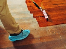 Using a brush, the floor is covered with a primer for wooden surfaces. The remedy is similar to the mastic, both in appearance and properties, so additional waterproofing is not required.