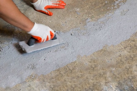 In older homes, concrete floors often need repair, so if there are localized damages, they should be grouted. If the old screed is in poor condition, it must be completely removed, using a hole punch, and after that clean all the irregularities, and grout the cracks. Further work is performed in the same sequence as in the preparation of a new concrete base.