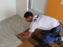 1. It is worth starting with the preparation of the surface. To do this, it is necessary to carefully remove all construction debris, eliminate unevenness and check the compliance of the floor with the level. All irregularities and level differences will need to be eliminated. It may even be necessary to pour a thin layer of mortar, which is perfectly suitable self-leveling compound. The concrete floor can be sanded down, and the wooden substrate can be scraped.