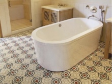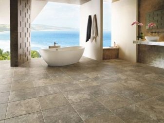 - The high level of moisture resistance allows you to choose vinyl tiles for bathrooms and even swimming pools. If all the rules and technology were followed during masonry, the seams will not swell during use, will not sprawl and will be monolithic. This feature of vinyl flooring allows its use as additional waterproofing.