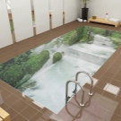 Los suelos de la sala de vapor y de los alrededores de la piscina deben estar alicatados con baldosas especiales que no resbalen cuando estén expuestas al agua. Las piedras naturales, como el granito, el mármol y la toba, son revestimientos de suelo caros pero hermosos y duraderos. El plástico también puede utilizarse para abaratar la construcción. Las nuevas tecnologías ofrecen constantemente materiales de acabado con propiedades universales. Entre ellos se encuentran la piedra artificial resistente al agua y también el gres porcelánico, que es resistente a la humedad. Los suelos compuestos son muy duraderos e ideales para la calefacción por suelo radiante.