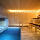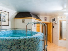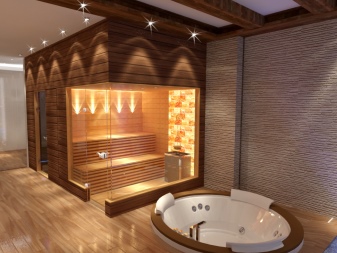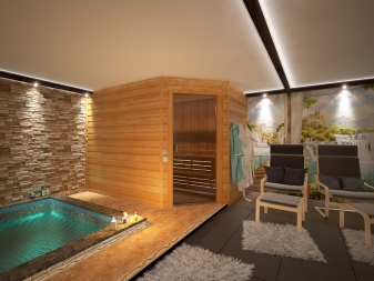 Dentro de un edificio de sauna prefabricada, no siempre es posible construir una gran piscina. En las regiones del sur con un clima cálido, es habitual construir obras hidráulicas al aire libre. Pueden ser completamente abiertas o tener un techo transparente. Los cuencos cubiertos están recubiertos de vidrio templado duradero o de policarbonato sobre un marco metálico. Para construir un cuenco calentado, se colocan elementos de calentamiento eléctricos a lo largo del fondo. Los amplios complejos de saunas del sector privado suelen combinarse con campos deportivos de tenis de mesa y gimnasios. Los espacios interiores con mucha humedad también pueden albergar un pequeño invernadero, una cantina y otros espacios útiles.