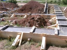 La casa de la sauna de madera o de bloques de espuma puede construirse con el método del marco, rellenando el espacio de la pared con un material aislante poroso. Para este tipo de construcciones de muros ligeros, basta con una zapata de banda de hormigón ligero, vertida sobre la armadura colocada a una profundidad de 50-60 cm. Es posible colocar el armazón sobre postes separados que puedan soportar pequeñas cargas.