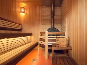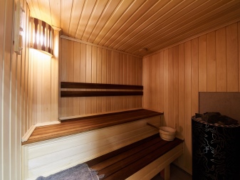 En la sala de vapor, los paneles de madera blanda siempre han sido ideales. Esto crea una atmósfera más saludable en la sauna con los vapores resinosos de las placas de revestimiento. El alicatado es más barato y más fácil de mantener. Es posible enlucir las paredes, pero debido a la alta humedad y a las grandes variaciones de temperatura, habrá que hacer reparaciones con frecuencia.