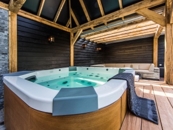 Esto permite disponer de una bañera de hidromasaje de tipo fijo, plegable o pequeña en un edificio de saunas privadas. Se dividen en exteriores e interiores, que pueden instalarse como anexos o refugios.