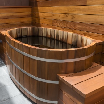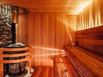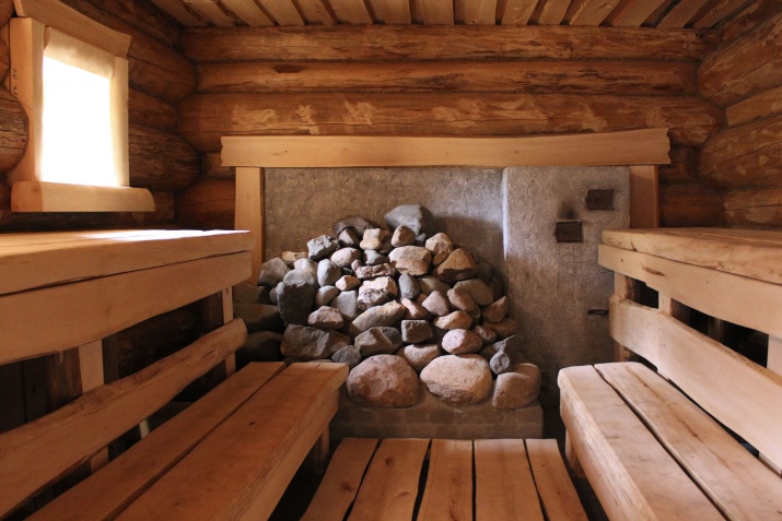 Una antigua tradición es utilizar madera de alerce y cedro para la construcción y los interiores. Contienen resinas que se evaporan al calentarse, y estos tipos de madera contienen naturalmente sustancias antisépticas. También se utilizan tablas de abedul, tilo, pino y aliso para las salas de vapor.