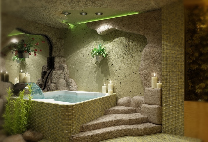 Cada vez son más los propietarios de viviendas particulares que piensan en el dispositivo en el baño. Dentro de la estructura básica pueden instalarse copas de diferentes materiales en todos los tipos de diseños. Las instalaciones permanentes para grandes cantidades de agua se construyen al mismo tiempo que el edificio principal. También se puede organizar un anexo independiente para la zona de baño. La base de estas piscinas suele ser un vaso de hormigón armado con una membrana impermeabilizante.