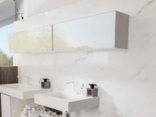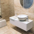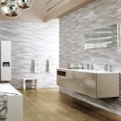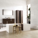 - "Manila". Imitación de mármol natural. El azulejo combina perfectamente con otros acabados (mosaico, paneles de plástico, materiales naturales).