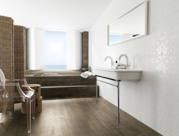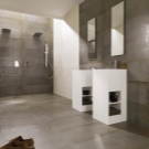 - "Aqua". Para los amantes del diseño clásico y de los colores claros y limpios, esta baldosa es la elección perfecta. La cerámica tiene un sutil color lechoso, sin dibujos ni relieves, para crear un interior ligero y aireado, mientras que la superficie brillante y lustrosa del tablero lo hará más ornamentado. El material es ideal para el revestimiento de espacios con mucha humedad (piscinas, saunas), así como para oficinas y locales residenciales.