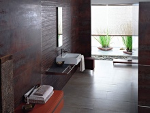 - "Ruggine". Una original colección con azulejos que imitan la superficie del metal oxidado. Los tonos oscuros y el característico patrón "oxidado" crean una superficie "metálica" sólida y monolítica.