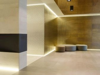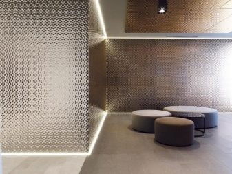 - Muchas colecciones están disponibles en diferentes texturas: lisas o estriadas. La primera opción es más familiar, fácil de cuidar y permite ampliar visualmente el espacio. Una superficie moleteada tiene un aspecto más original, pero requiere más cuidados.