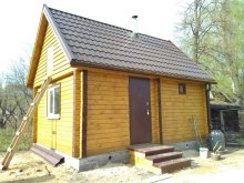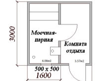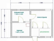 - See võib olla suhteliselt väike - 6x4 meetrit. Ruudukujuline konstruktsioon mahutab suure puhkeala, mis on eraldatud riietusruumist vaheseinaga. Vastasküljele saab ehitada sauna ja pesuruumi, mis on eraldatud põrandaplaadiga.
