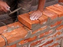 Võib kasutada kergmüüritist. Alustage seinu nurkadest. Kõigepealt aseta esimesed 6 rida nurkadesse. Kõikide ridade äärde on pingutatud nöör. On vaja mässida naelad, mis pannakse telliskivide vahelistesse vuukidesse - nii määratakse müüritise tasasus. Sokkel peaks olema valmistatud täismassist, seinad õõnsatest tellistest.