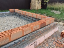 Pärast valmis vundamendi hüdroisolatsiooni saab ehitada seinad. Kõige populaarsem on ühe rea nöörisüsteem. See hõlmab telliskiviridade vaheldumist tagumise ja lusikaga telliskivide vahel.