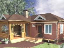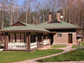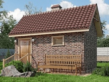 - Tumepunasest tellisest saun, millel on roheline kolmekandiline katus, on väga ilus ja rikkalik. Veelgi silmatorkavam on see konstruktsioon, kui seda kombineerida väikestest telliskivisammastest ja nende vahele paigutatud valgest piirdest koosneva pergooliga. Peahoone võib olla täiendatud haljastusega, nagu ka saunakonstruktsioonil.