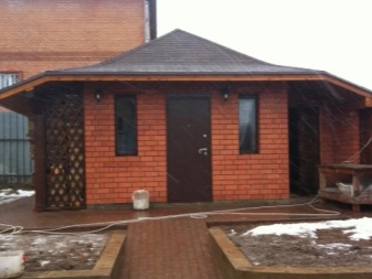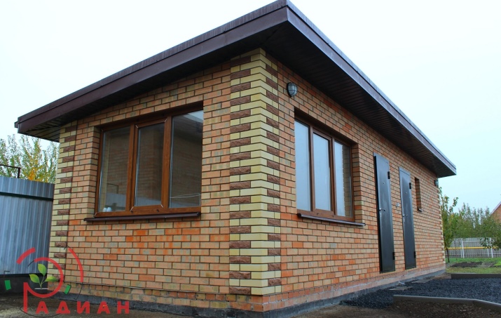- Väike punasest tellisest vann näeb välja puhas ja esteetiliselt meeldiv.Kui see on varustatud bordoopunase viilkatuse ja tumepruuniga sissepääsuksega. See on lihtne, kuid atraktiivne.