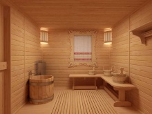 - Seejärel on vaja paigaldada ruumi konteiner külma veega, pliit ja riputada riiulid. Sauna pingid peaksid olema puidust ja laiad, et neil oleks mugav lamada ja istuda.
