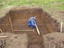- Kui asukoht ja parameetrid on lõplikult kindlaks määratud, võite alustada ehitusprotsessi. Kaevake auk piki ruumi piire (kõrgus määratakse individuaalselt). Veenduge, et seinad on seestpoolt tugevdatud. Selleks võite kasutada puid, müüritist või valada betooni.
